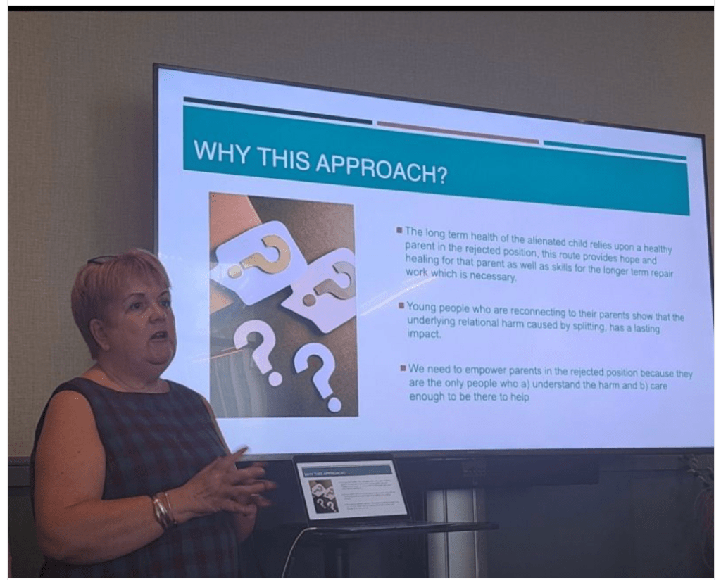 Our first in person workshop was attended by 23 mothers and 7 fathers. Our work with parents is to skill them in therapeutic parenting, to help them to mentalise the plight of the alienated child, learn how these abused children ‘speak’ and respond to their deep attachment needs.